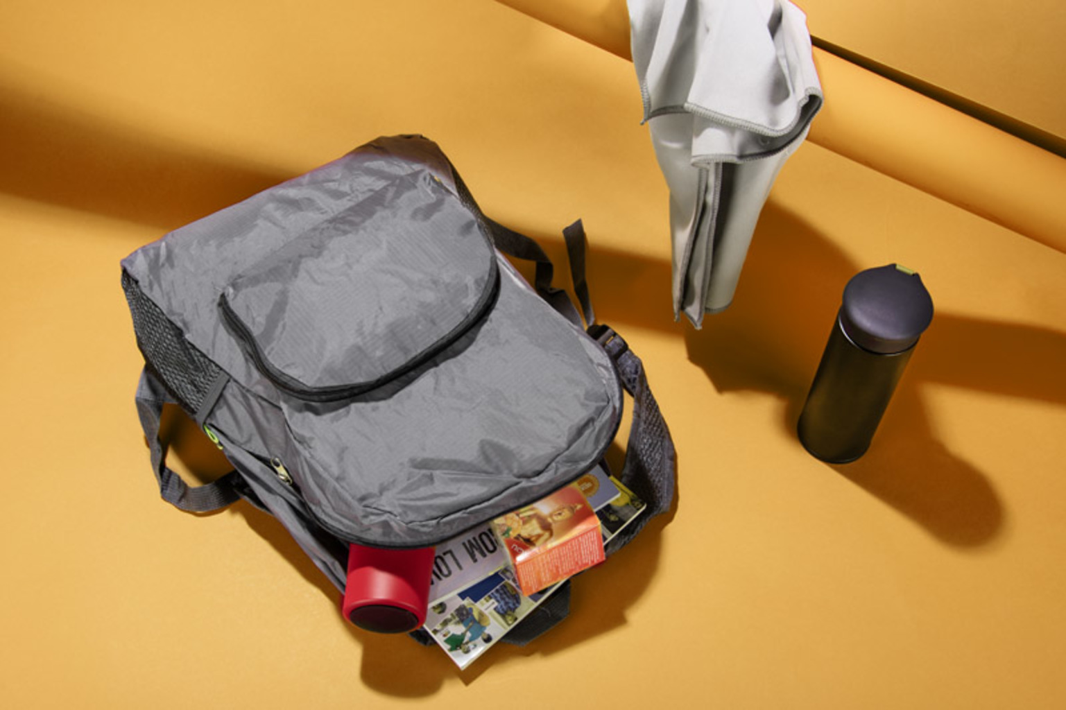 Funkcionální batoh, který lze složit do malých rozměrů. Je vybaven jednou vnitřní a třemi vnějšími kapsami, jednou uzavíratelnou na zip a dvěma síťkovanými. Batoh je vyrobený z polyesteru.