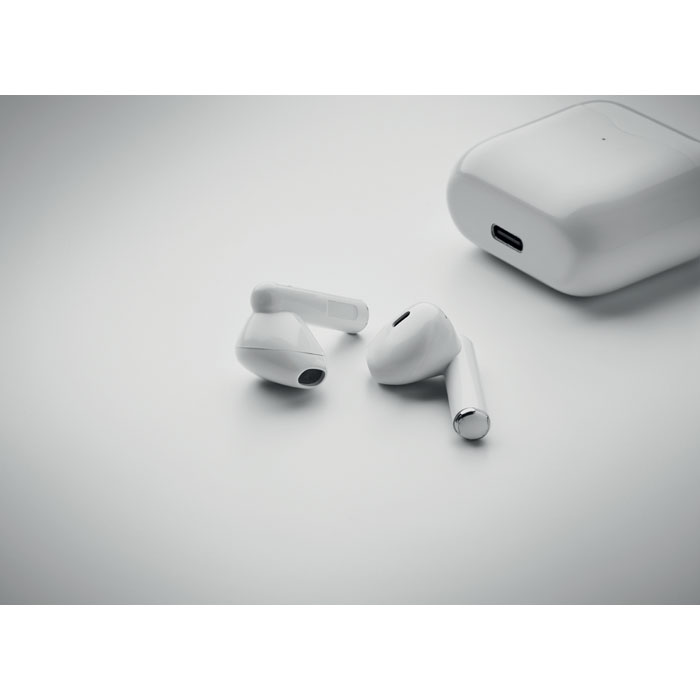 Bezdrátová stereofonní sluchátka True Wireless Stereo (TWS) 5.3 z ABS. S mikrofonem,vestavěnou 30mAh baterií a nabíjecí krabičkou 200 mAh. Doba hraní cca. 4 hodiny. Automatické párování.