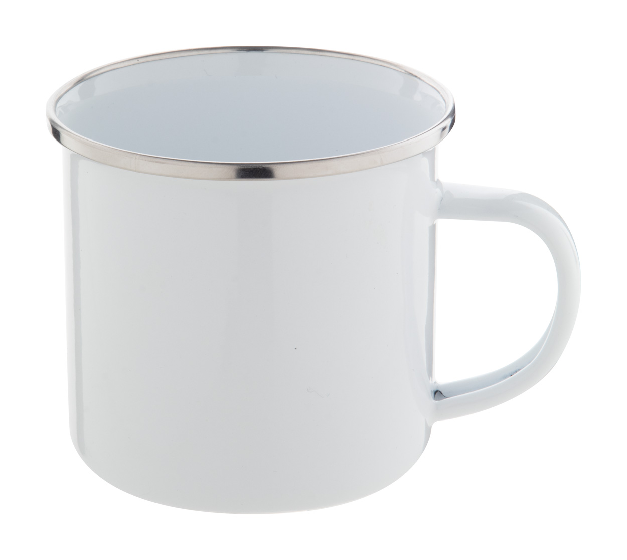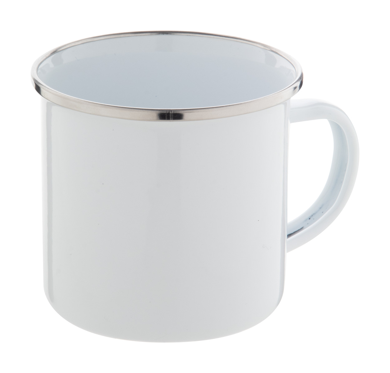 Vintage kovový smaltovaný hrnek s nerezovým okrajem, 300 ml.
