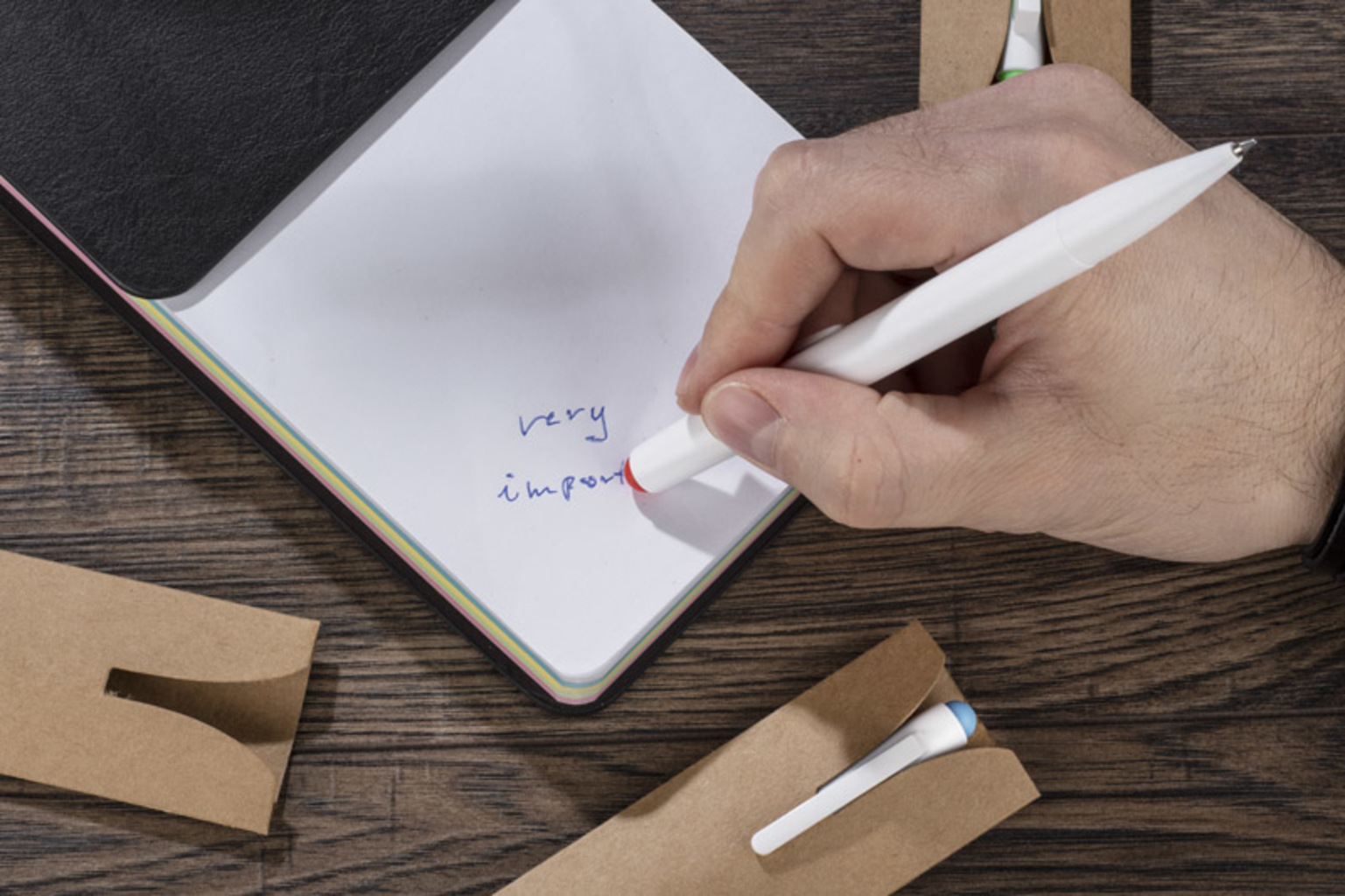Pero, které vám umožní opravit jakékoli chyby, je vysněným dárkem pro studenty. Speciální náplň umožňuje mazat psaný text pomocí gumy umístěné v horní části pera. MAZZI je vyroben z bílého plastu s barevnými akcenty. Baleno v estetickém papírovém pouzdře. Zatahovací kuličkové pero, modrá náplň.