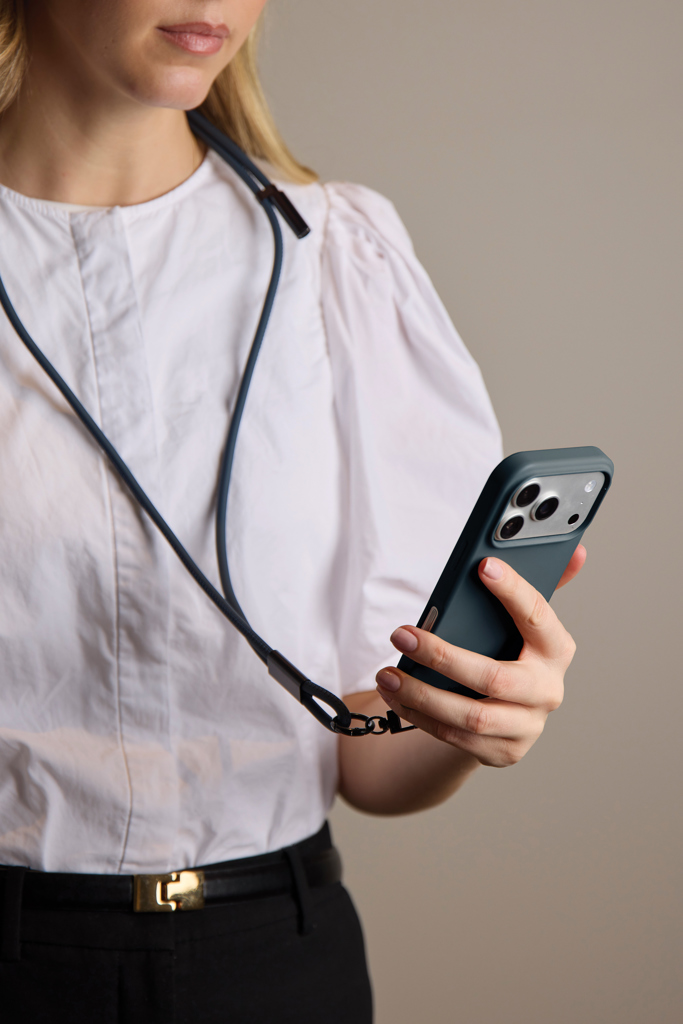 Šňůra na krk pro pohodlné nošení telefonu. Vyrobena z RCS certifikovaného recyklovaného TPE s matným PU povrchem, což jej činí vizuálně atraktivní. Vytvořena pro život v pohybu, pohodlně spočívá kolem krku jako šňůra na krk, udržuje váš telefon v bezpečí a snadno dostupný. Připravena k rychlému nabíjení nebo přenosu dat, kdykoli to potřebujete, což zajišťuje bezproblémové připojení na cestách. Zpevněná spona a kroužek jsou navrženy tak, aby byly pevné a robustní, což je činí dostatečně silnými pro bezpečné držení i těžších smartphonů při nošení. Nastavitelný 160 cm spirálový kabel nabízí flexibilní dosah bez zamotání, což zajišťuje pohodlné nošení jako šňůra na krk. Nabíjecí výstup: PD 60W (20V/3A). Připojení: USB-C na USB-C. Podporuje super rychlé nabíjení, synchronizaci dat, CarPlay a Android Auto. Celkový obsah recyklovaných materiálů: 49 % z celkové hmotnosti výrobku. Certifikováno organizací Control Union, CU1162221.
