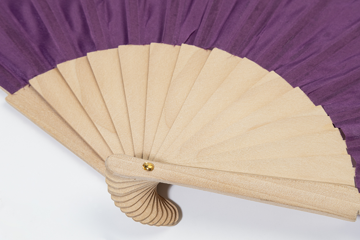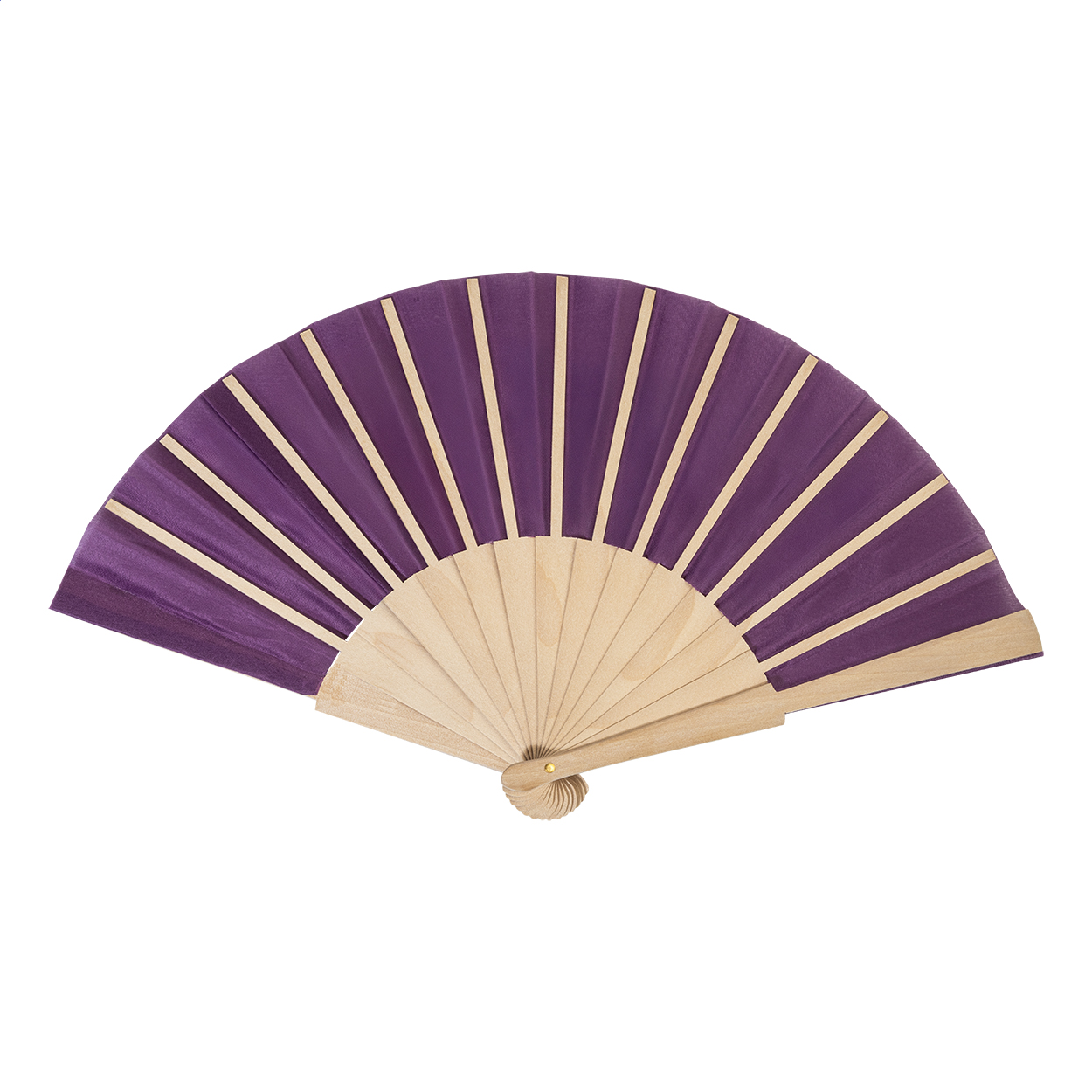 Vějíř z RPET polyesteru s dřevěnými žebry.