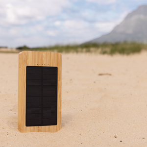 Solární powerbanka s kapacitou 10 000 mAh využívající vysoce kvalitní monokrystalické solární panely s 19 % konverzním poměrem. Nabíjecí rychlost závisí na slunečních podmínkách. Vyrobená ze 100 % FSC certifikovaného bambusu. Obsahuje vysoce kvalitní lithiovou baterii řady A s kapacitou 10 000 mAh. Solární nabíjecí rychlost: 5V/180mA. Vstup USB C: 5V/2A. Výstup USB A: 5V/2A, USB C: 5V/2A. Včetně nabíjecího kabelu z RCS recyklovaného TPE. Baleno v FSC kraftové dárkové krabičce. Produkt i příslušenství bez PVC.