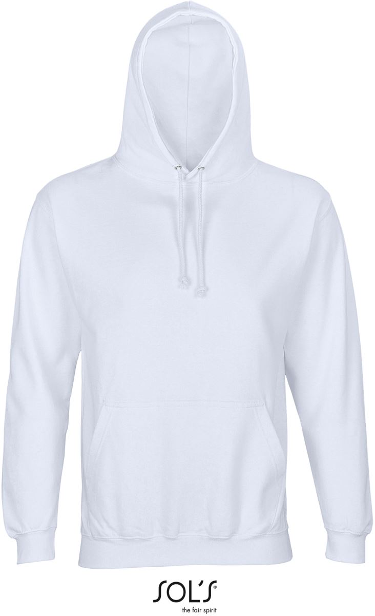 Podšitá kapuce se šňůrkou, půlměsícová podsádka na krku, krční lemovka, vsazené rukávy, žebrované manžety na rukávech a lemu, klokaní kapsa, kovová očka, zdrsněná vnitřní strana, neutrální velikostní štítek, pratelné na 40°, nelze sušit v sušičce