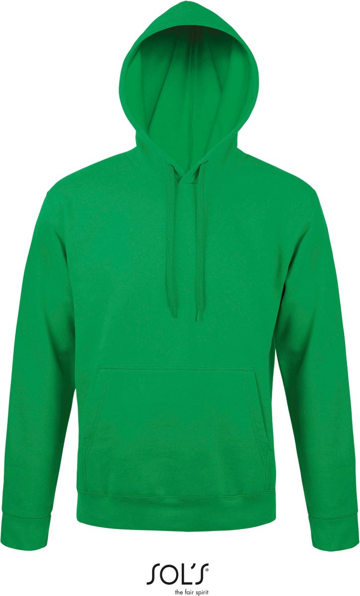 Klasický střih, kapuce bez podšívky s barevně sladěnou šňůrkou, vsazené rukávy, žebrované manžety na krku, rukávech a lemu s elastanem, štítek TearAway, neutrální velikostní štítek, pratelné na 30°, nelze sušit v sušičce