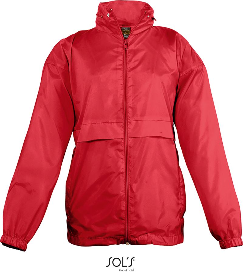 Vodoodpudivý materiál, kapuce v límci, nastavitelná šňůrka na lemu a v pase, elastické manžety na rukávech, větrací otvory, pratelné na 30°, nelze sušit v sušičce