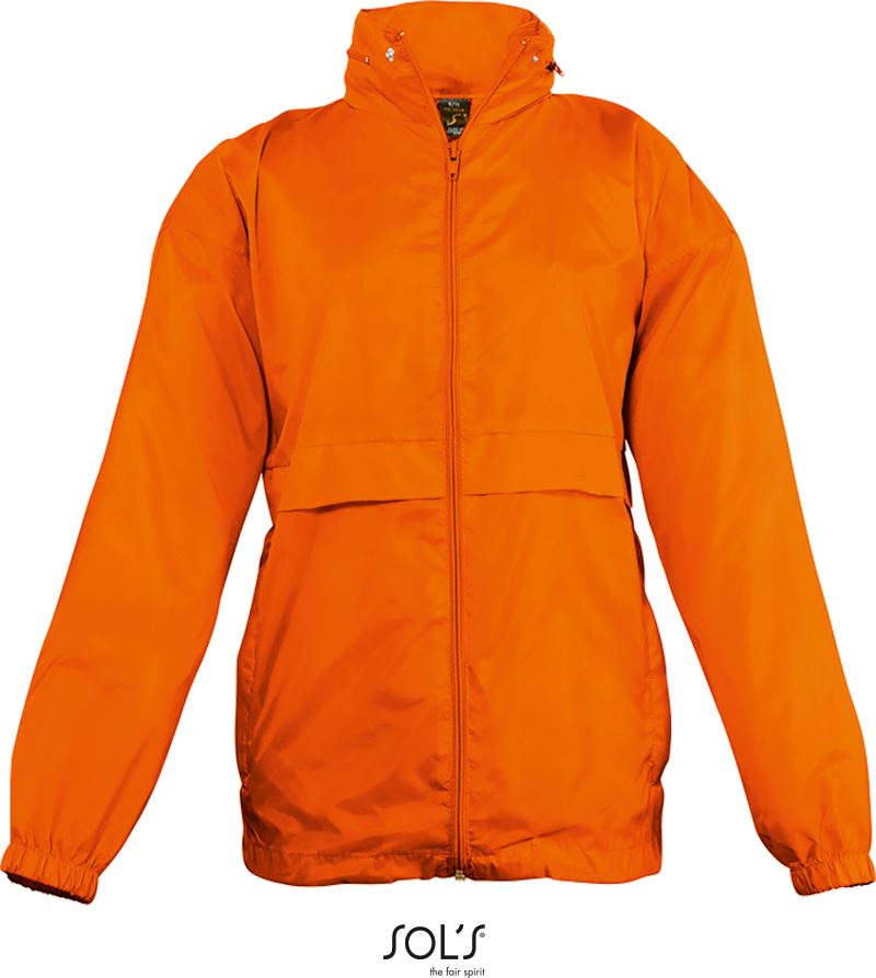 Vodoodpudivý materiál, kapuce v límci, nastavitelná šňůrka na lemu a v pase, elastické manžety na rukávech, větrací otvory, pratelné na 30°, nelze sušit v sušičce