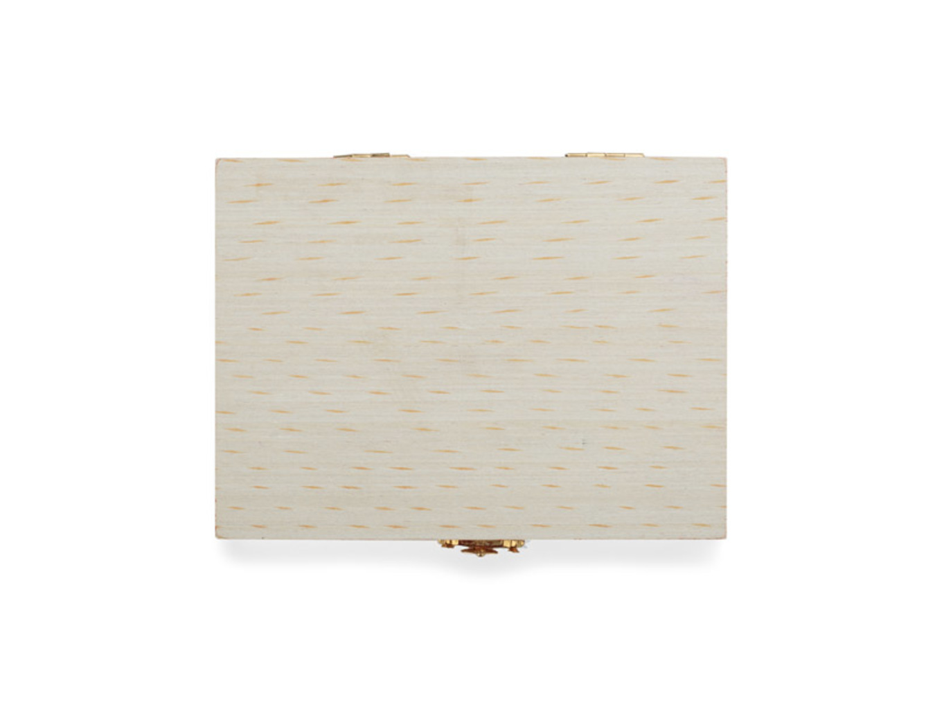 Praktická sada v dřevěné krabičce obsahující: tužku, gumu, tužkový ořezávač, pastelky a barvy s štětcem. Mohli bychom vyryt logo na krabici.