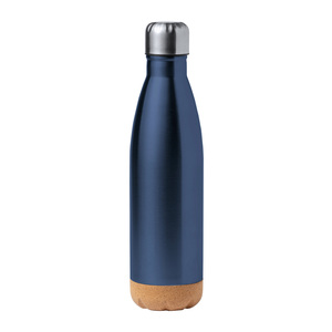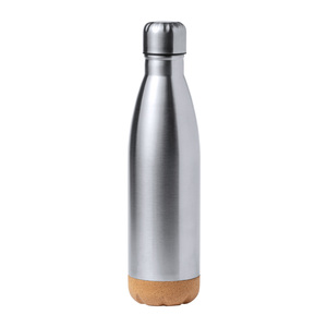Nerezová sportovní láhev ve tvaru láhve s dnem z přírodního korku, 750 ml.
