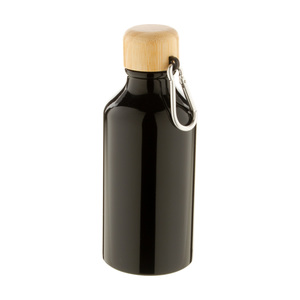 Hliníková sportovní láhev s bambusovým víčkem a karabinou, 400 ml.