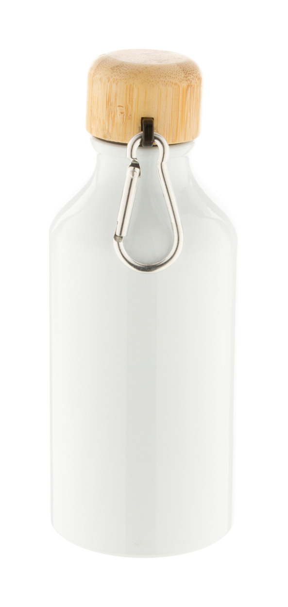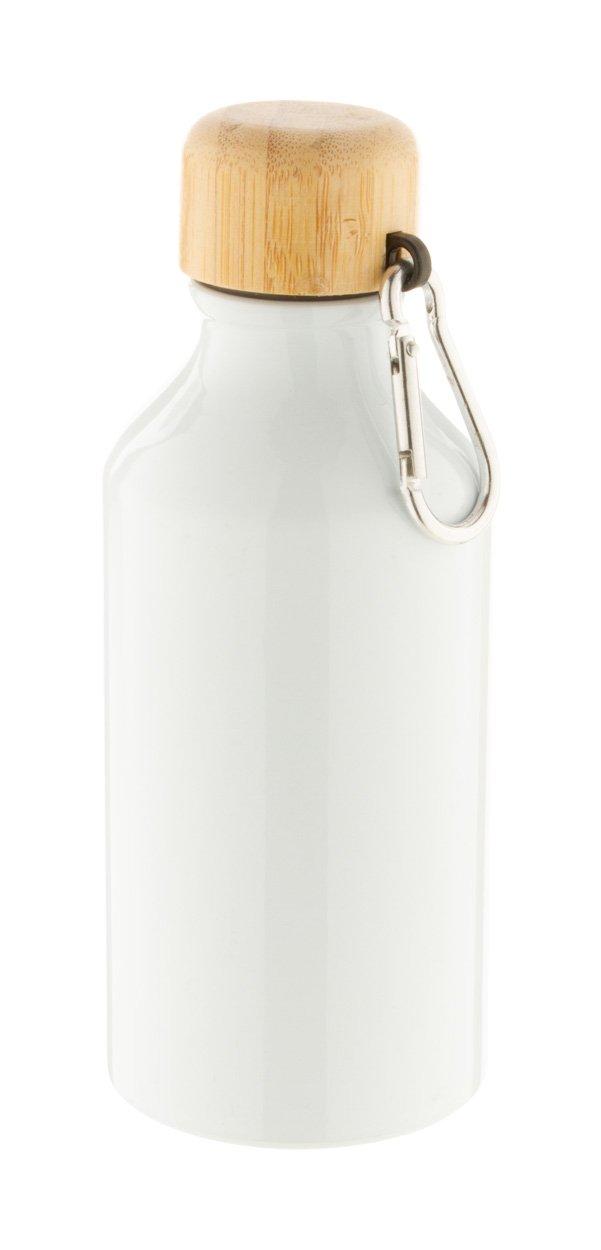 Hliníková sportovní láhev s bambusovým víčkem a karabinou, 400 ml.