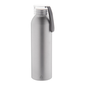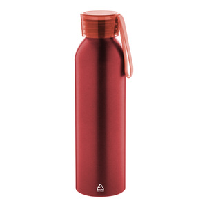 Sportovní láhev z recyklovaného hliníku s víčkem v odpovídající barvě a silikonovým popruhem, 600 ml.