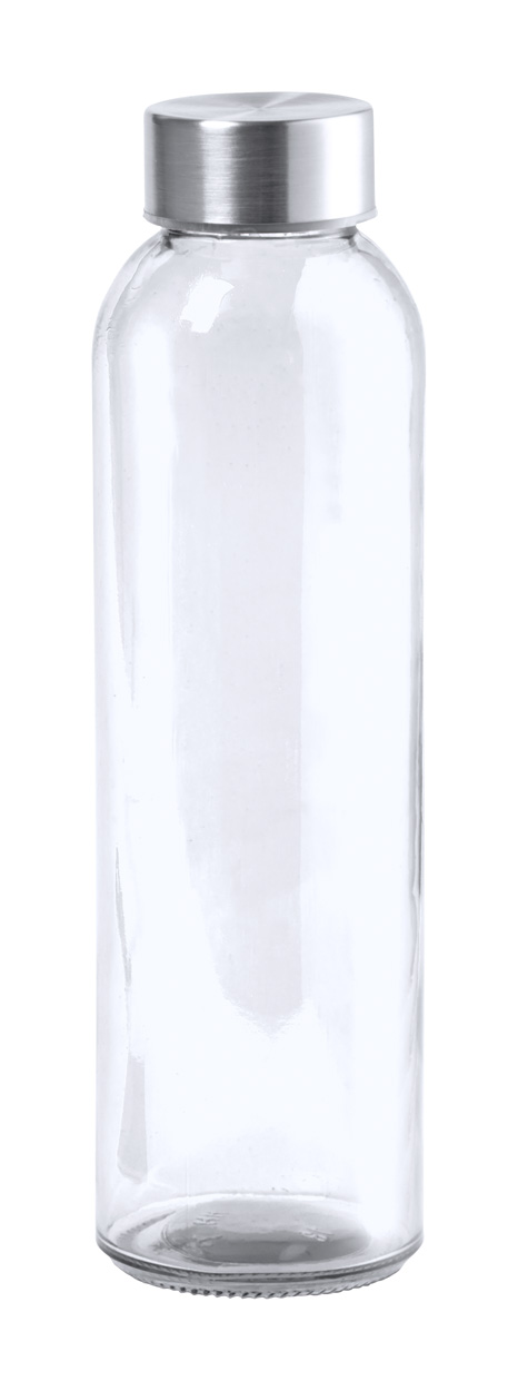 Transparentní skleněná sportovní láhev na pití s kovovým víčkem, 500 ml. V dárkové krabičce. Nevhodné pro sycené nápoje.