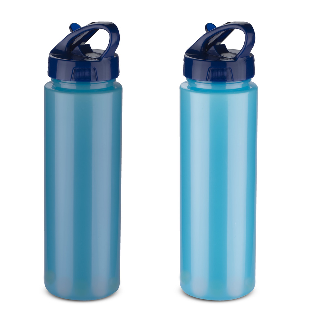 Láhev na vodu vybavená chladicí vložkou. Po naplnění láhve velmi studenou vodou se barva stěn změní na tmavě modrou. Objem 700 ml včetně chladicího obalu. Užitná kapacita 600ml.