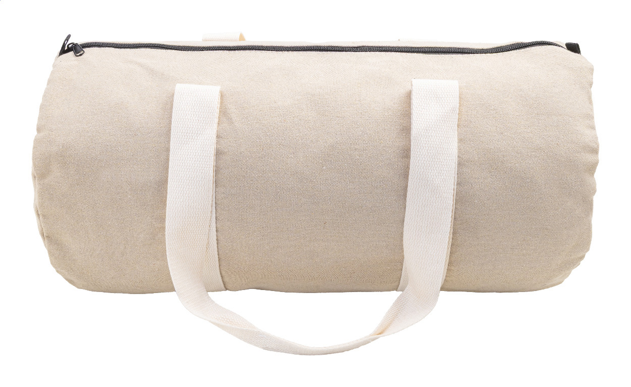 Sportovní taška z recyklovaného plátna s hlavní přihrádkou na zip, vnitřní kapsou na zip a dlouhými uchy. 70 % recyklované bavlny a 30 % recyklovaného polyesteru. S výraznou etiketou z recyklované bavlny.