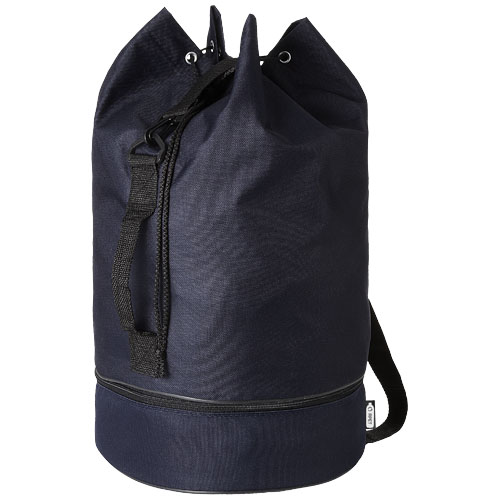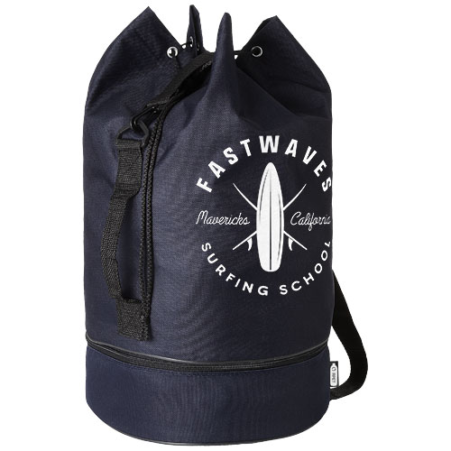 Voděodolná sportovní taška vyrobená z recyklovaného PET plastu s prostorným 20litrovým hlavním oddílem se stahovacím uzávěrem, uchem na boku a nastavitelným ramenním popruhem. Má také samostatný spodní oddíl na zip pro menší předměty.