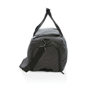 Ideálně navržená taška pro aktivní životní styl. Vyrobená z odolného materiálu 900D se svrškem repelentním vodě bránící promoknutí z vlhkých podlah v posilovnách či v přírodě. Zpevněná madla do ruky a měkčený popruh na rameno nabízejí všestranné nošení. Prostorný hlavní oddíl s vnitřní kapsičkou pro uschování cenností, prodyšní oddíl na obuv a přední kapsa na zip ideální na často využívané předměty (klíče, mobilní telefon a další). PVC free.