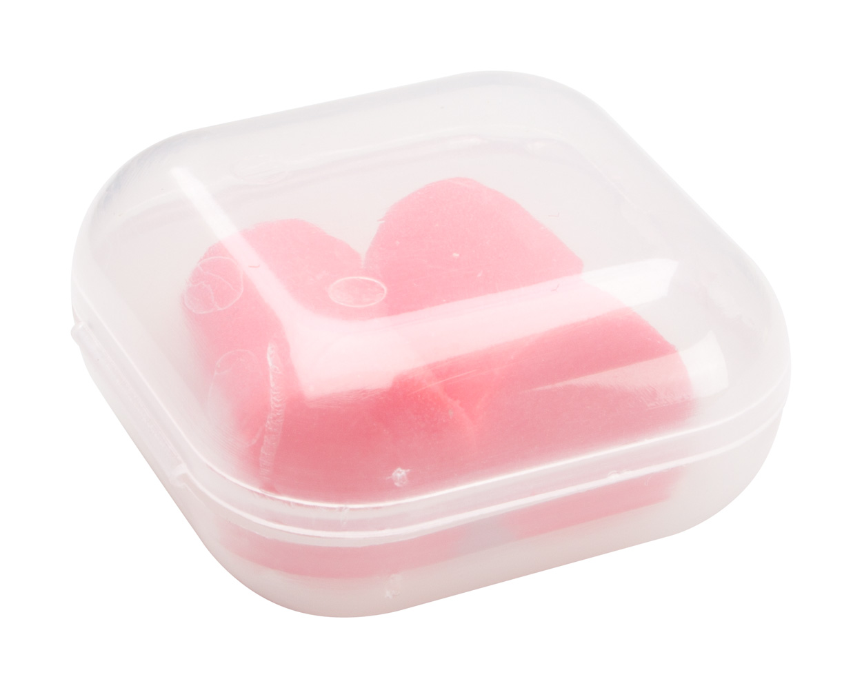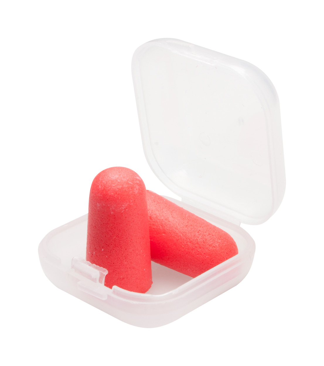Barevné špunty do uší v průhledném, plastovém pouzdru, vyrobeno z EVA materiálu.
