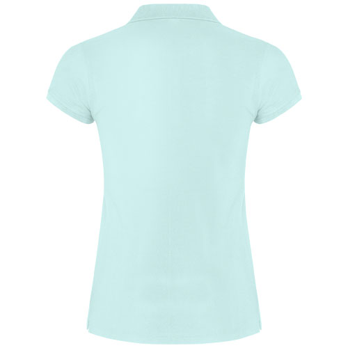 Dámské polo tričko s krátkým rukávem. Zesílené kryté švy ve vnitřním límci. Límec a manžety s žebrováním 1x1. Boční švy a vypasovaný střih. Úzké zapínání na 3 knoflíky. Boční rozparky. Odnímatelná etiketa. Modelka měří 179 cm a má na sobě velikost S.
