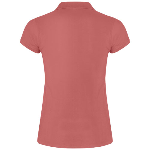 Dámské polo tričko s krátkým rukávem. Zesílené kryté švy ve vnitřním límci. Límec a manžety s žebrováním 1x1. Boční švy a vypasovaný střih. Úzké zapínání na 3 knoflíky. Boční rozparky. Odnímatelná etiketa. Modelka měří 179 cm a má na sobě velikost S.