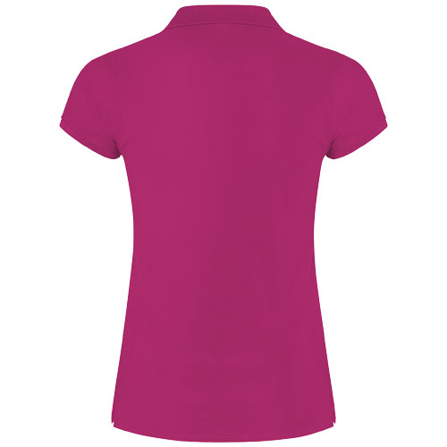 Dámské polo tričko s krátkým rukávem. Zesílené kryté švy ve vnitřním límci. Límec a manžety s žebrováním 1x1. Boční švy a vypasovaný střih. Úzké zapínání na 3 knoflíky. Boční rozparky. Odnímatelná etiketa. Modelka měří 179 cm a má na sobě velikost S.
