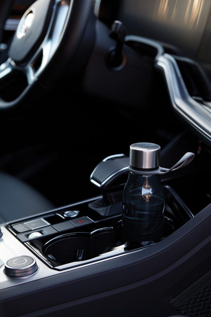 Láhev na vodu vyrobená z tritanového plastu bez obsahu BPA. Poutko na víku umožňuje snadné zavěšení na cvičební stroj a láhev je díky svému ideálnímu tvaru vhodná pro většinu držáků na nápoje. Láhev se snadno čistí. Je možné přidat potisk.