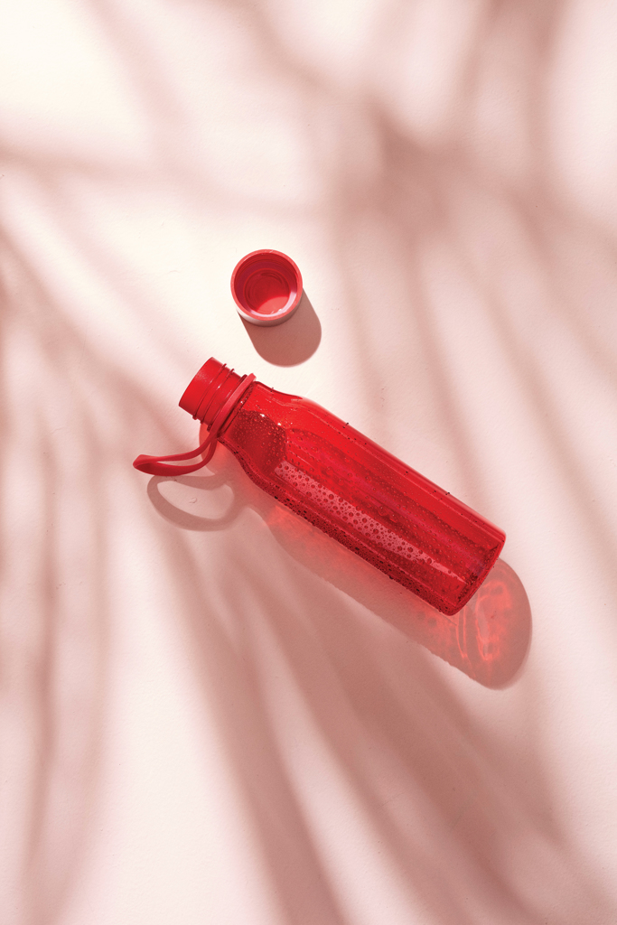 Láhev na vodu vyrobená z tritanového plastu bez obsahu BPA. Poutko na víku umožňuje snadné zavěšení na cvičební stroj a láhev je díky svému ideálnímu tvaru vhodná pro většinu držáků na nápoje. Láhev se snadno čistí. Je možné přidat potisk.