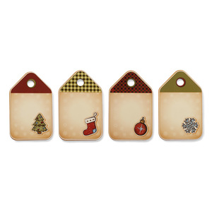 Sada ramínek s vánočními tisky. Může být zavěšena jako vánoční dekorace nebo jako dárkové ramínko. Sada obsahuje čtyři kusy. Jsou vyrobeny z dřeva.