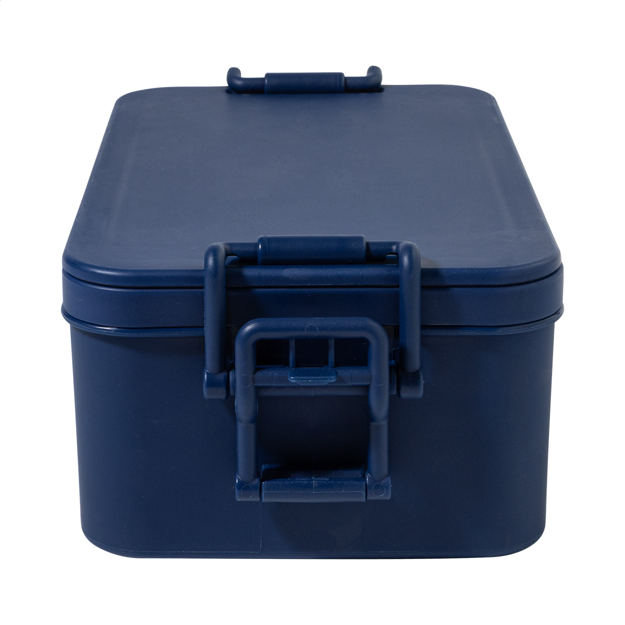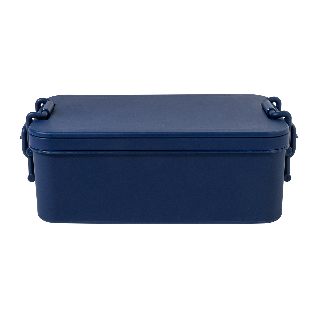 Box na jídlo z PP plastu se sadou příborů (vidlička, lžíce a nůž), zapínáním na přezku a 2 přihrádkami (1000 ml a 800 ml). Stohovatelný design pro kompaktní skladování.
