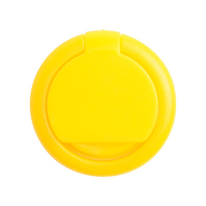 Kulatý, plastový stojánek na mobil s protiskluzovou úpravou a mincí do nákupního vozíku.