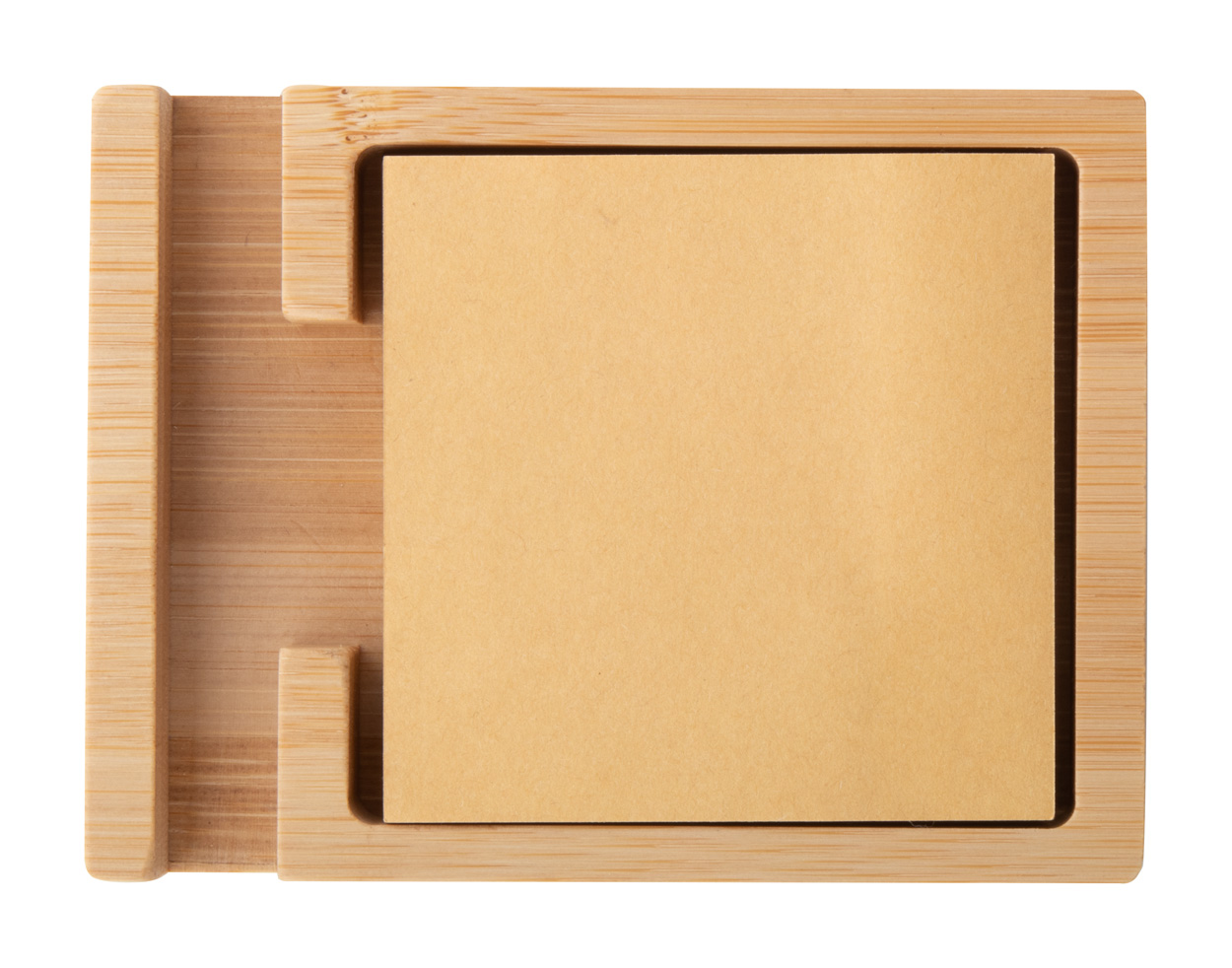 Bambusový stojánek na mobilní telefon se 125 listy poznámkového bloku z recyklovaného kraftového papíru (75x75 mm).