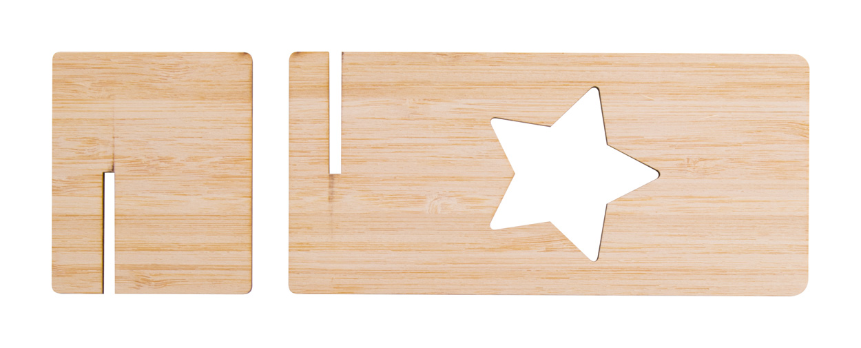 Stojánek na mobil z bambusové překližky s vyřízlým vánočním motivem. Dodáváno rozložené.