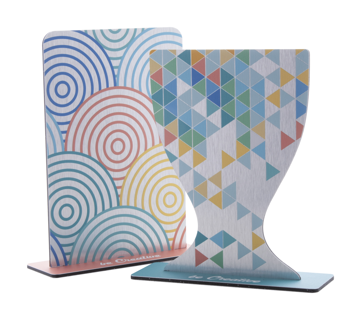 Plnobarevně potištěný stojánek z broušeného hliníku. Cena zahrnuje UV LED tisk na jedné straně, nezahrnuje tiskovou přípravu. Min. mn.: 50 ks.