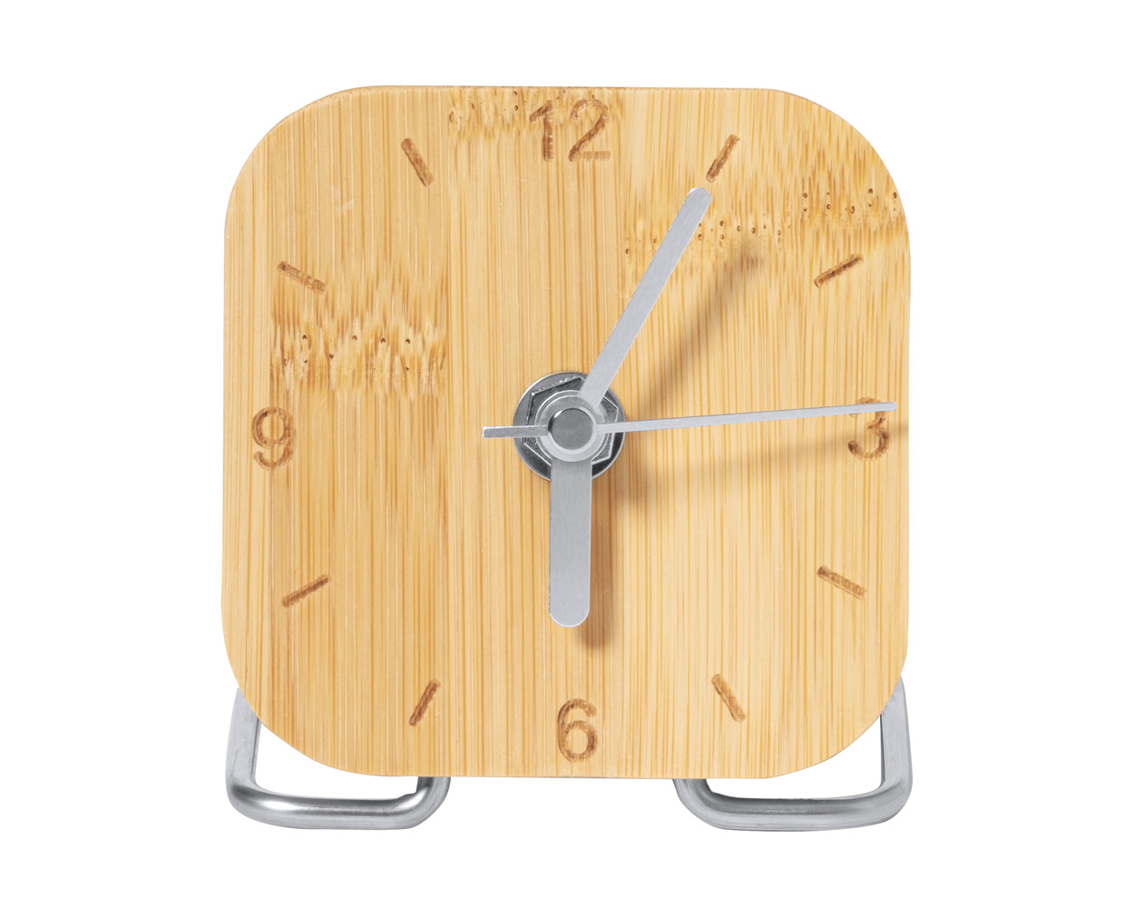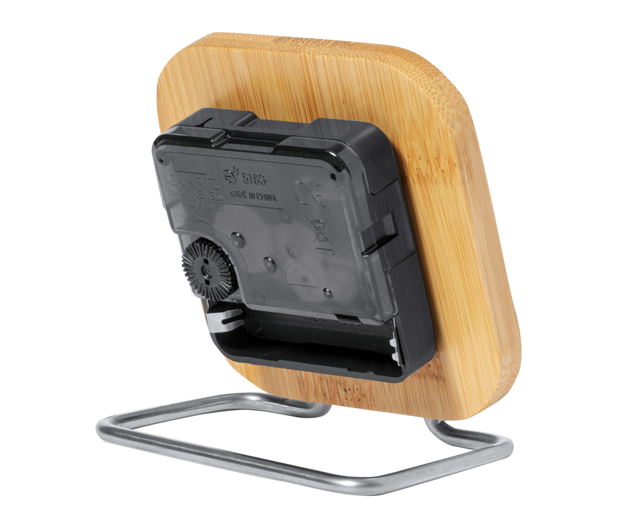 Stolní hodiny z bambusu a nerezové oceli. Funguje na 1 AA baterii, bez baterie.