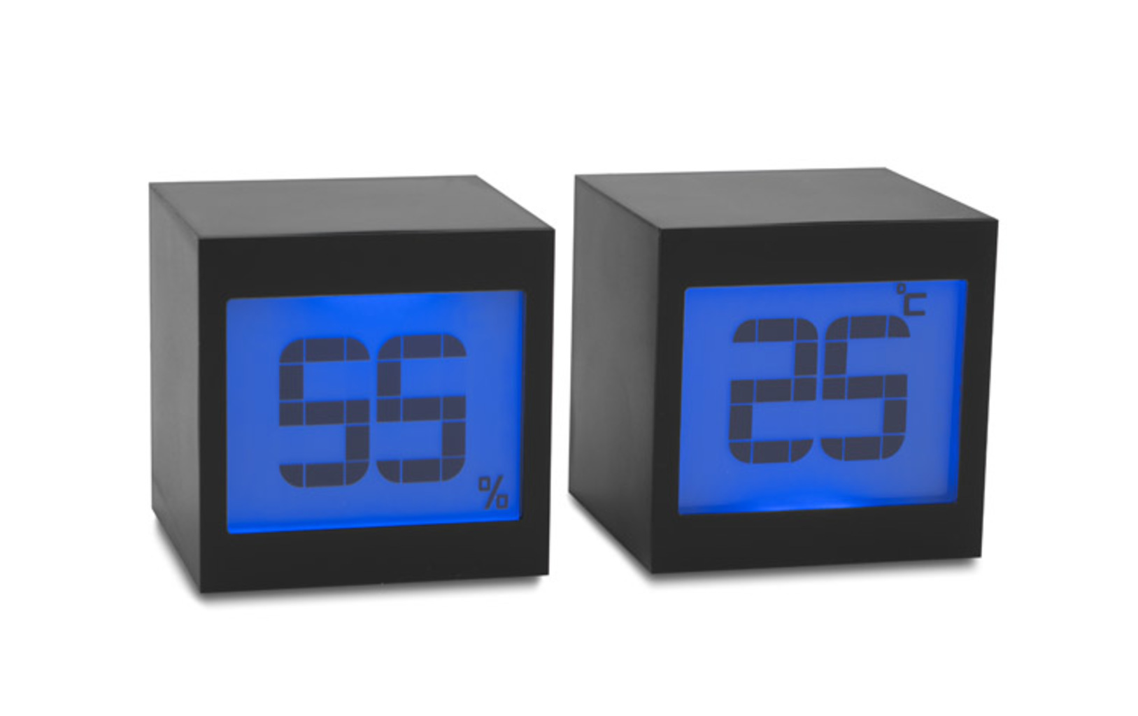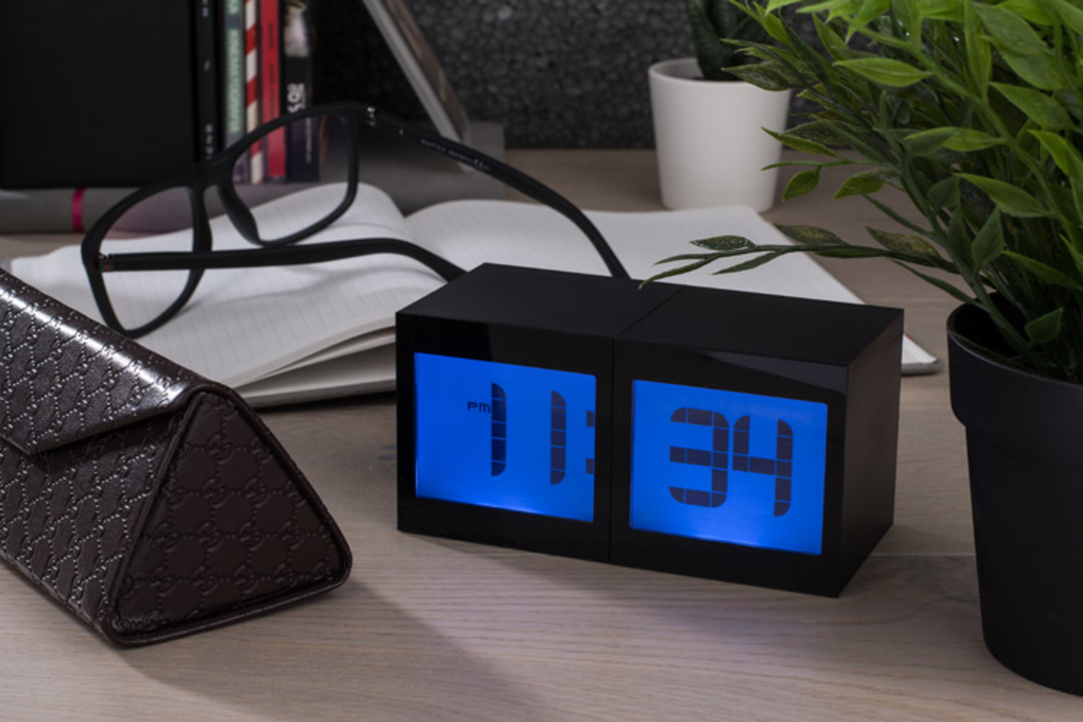 Kancelářské hodiny MAGIC jsou tvořeny dvěma separátními kostkami, které po spojení zobrazí aktuální čas, a po rozdělení - vlhkost a teplotu vzduchu. Oba displeje jsou modře podsvětlené. Je to naprosto geniální dárek pro příznivce serepetiček. Hodinky jsou vybavené funkcí: budíku, kalendáře a časovače.