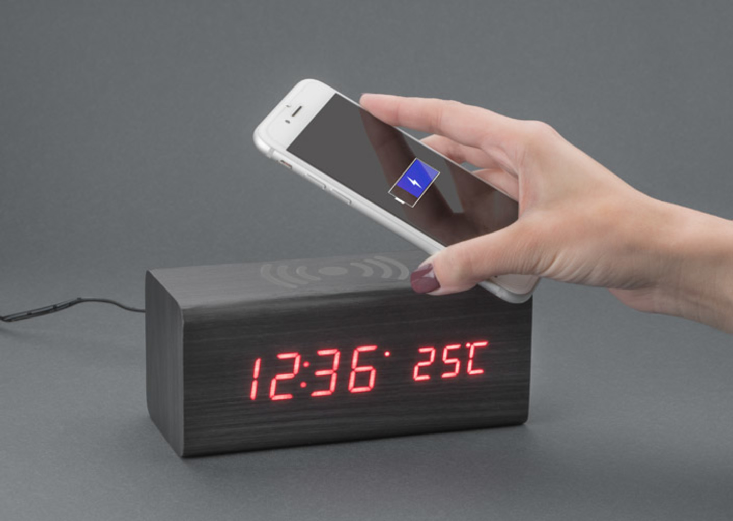 Stolní hodiny s bezdrátovou indukční nabíječkou CORNELL