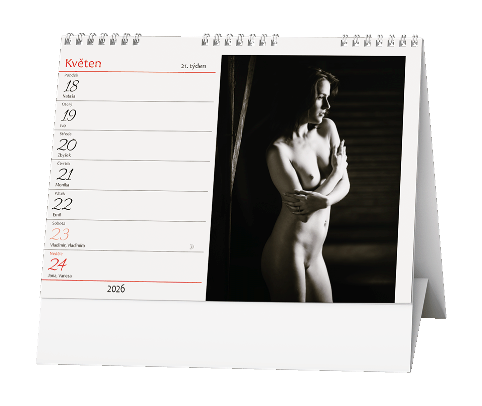 Stolní kalendář s erotickými obrázky v černobílém stylu pro všechny muže.