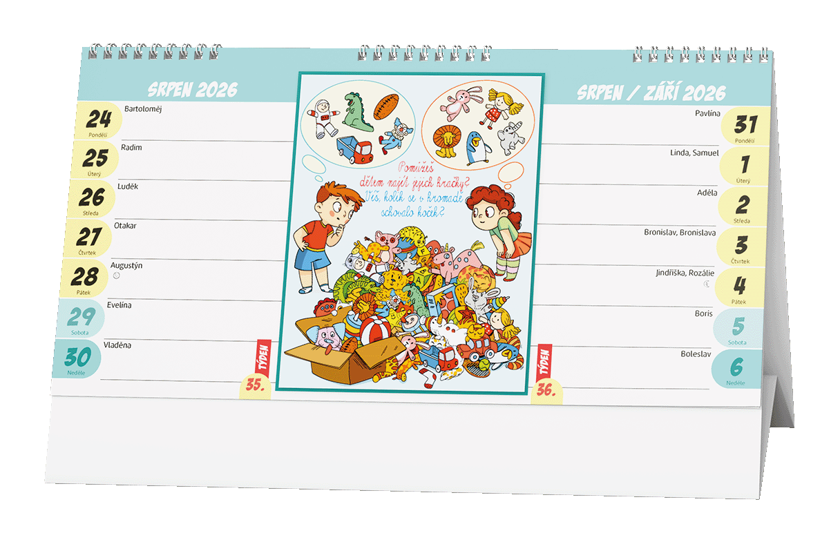Stolní kalendář s týdenním kalendáriem, při kterém se žádné dítě nenudí - s obrázky, úkoly a bludišti.