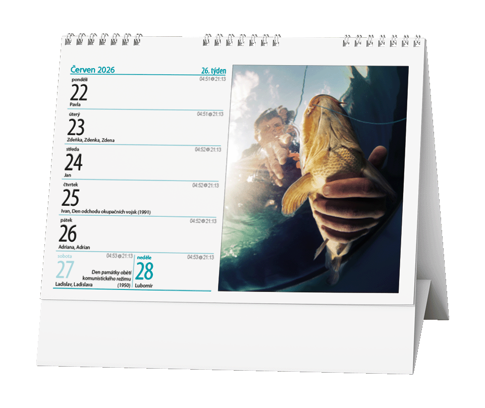 Stolní kalendář s týdenním kalendáriem pro všechny rybáře.