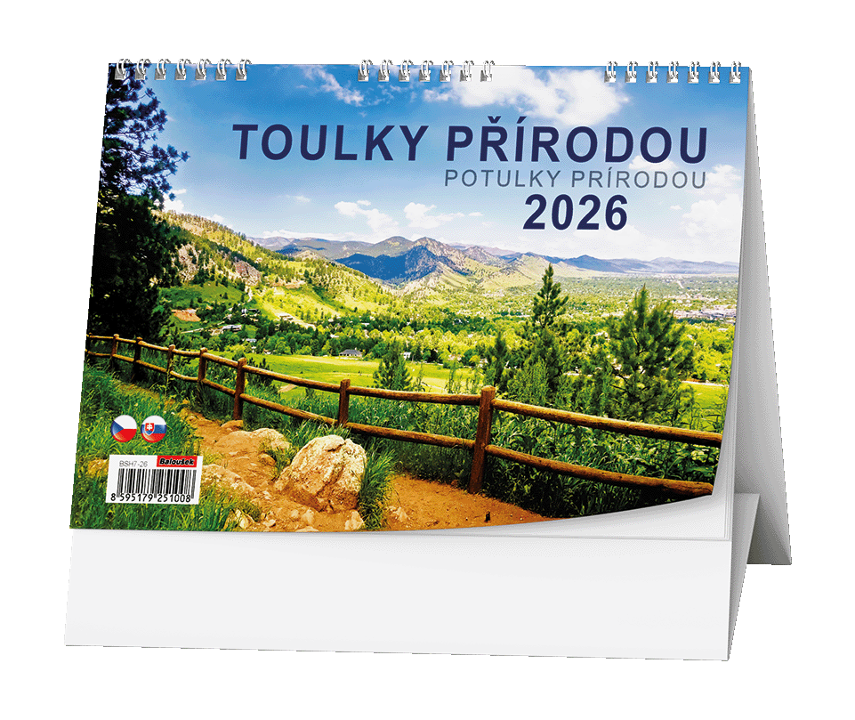Stolní kalendář s týdenním kalendáriem s obrázky přírodních scenérií.