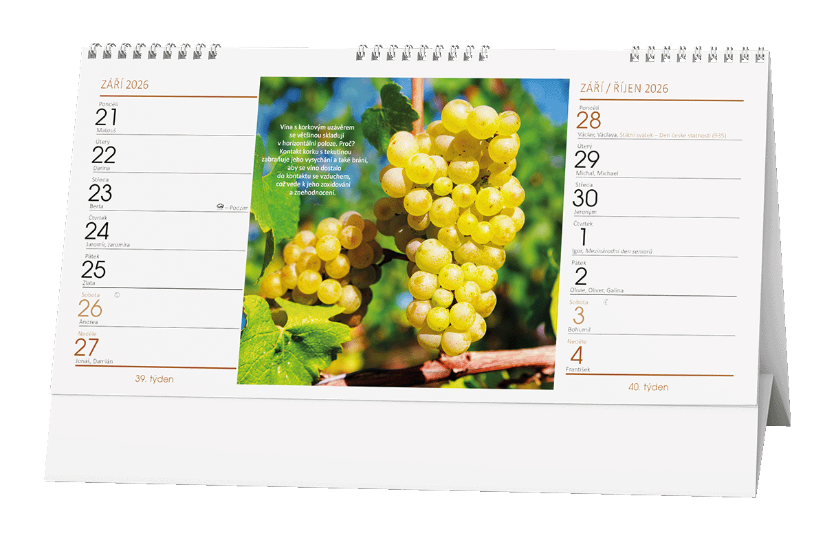 Vinaři pozor! Stolní kalendář se čtrnáctidenním kalendáriem pro všechny milovníky vína.
