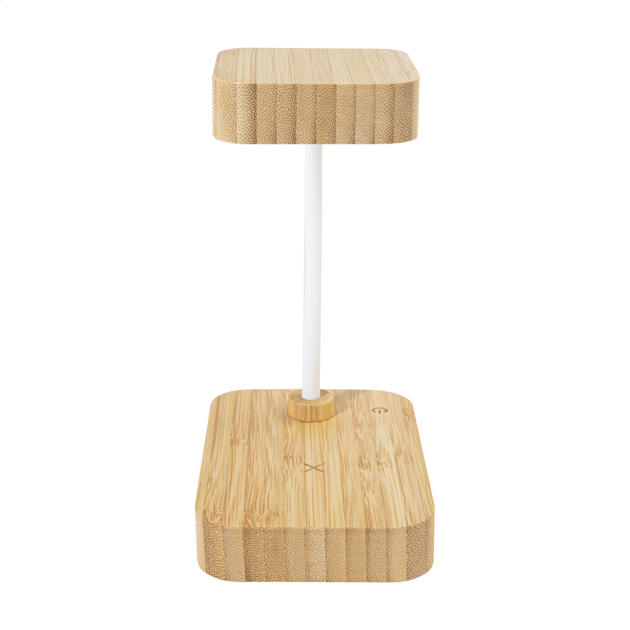 Bambusová multifunkční stolní lampa s 12 LED diodami a vestavěnou bezdrátovou rychlonabíječkou (15 W). S teplým, přirozeným a studeným světelným režimem a nastavitelným jasem. Včetně nabíjecího kabelu USB.