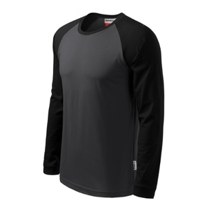 dvoubarevné provedení (vyjma barev 00, 01, 05), střih s bočními švy, úzký lem průkrčníku z žebrového úpletu 1:1 s 5 % elastanu, vnitřní část průkrčníku začištěna páskou z vrchového materiálu, dlouhé raglánové rukávy s manžetou, manžeta z žebrového úpletu 1:1 s 5 % elastanu, Přesunutí produktu pod značku RIMECK®. V rámci jedné zásilky se mohou objevit produkty s původním i novým labelem. Tato skutečnost není důvodem k reklamaci.