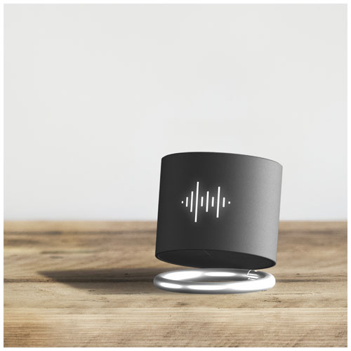 Bezdrátový 3W Bluetooth® reproduktor s podsvíceným logem a antimikrobiální vrstvou a dvojitým zvukovým výstupem pro bezkonkurenční kvalitu zvuku u reproduktorů této velikosti. Reproduktor lze naklonit a vést tak zvuk jakýmkoli směrem. Má vestavěnou funkci mikrofonu a konferenčního hovoru. Kapacita: Baterie 500 mAh – 3,7 V. Frekvence: 50 Hz – 20 KHz. Zvukový výstup: 1 × 3 W. Impedance: 4 Ω. Bluetooth® 4.2. Čistá hmotnost: 100 gramů. Velikost: ∅ 50 mm × 45 mm. Dodává se v dárkové krabičce s magnetickým zavíráním, vyrobené z recyklovaného papíru.