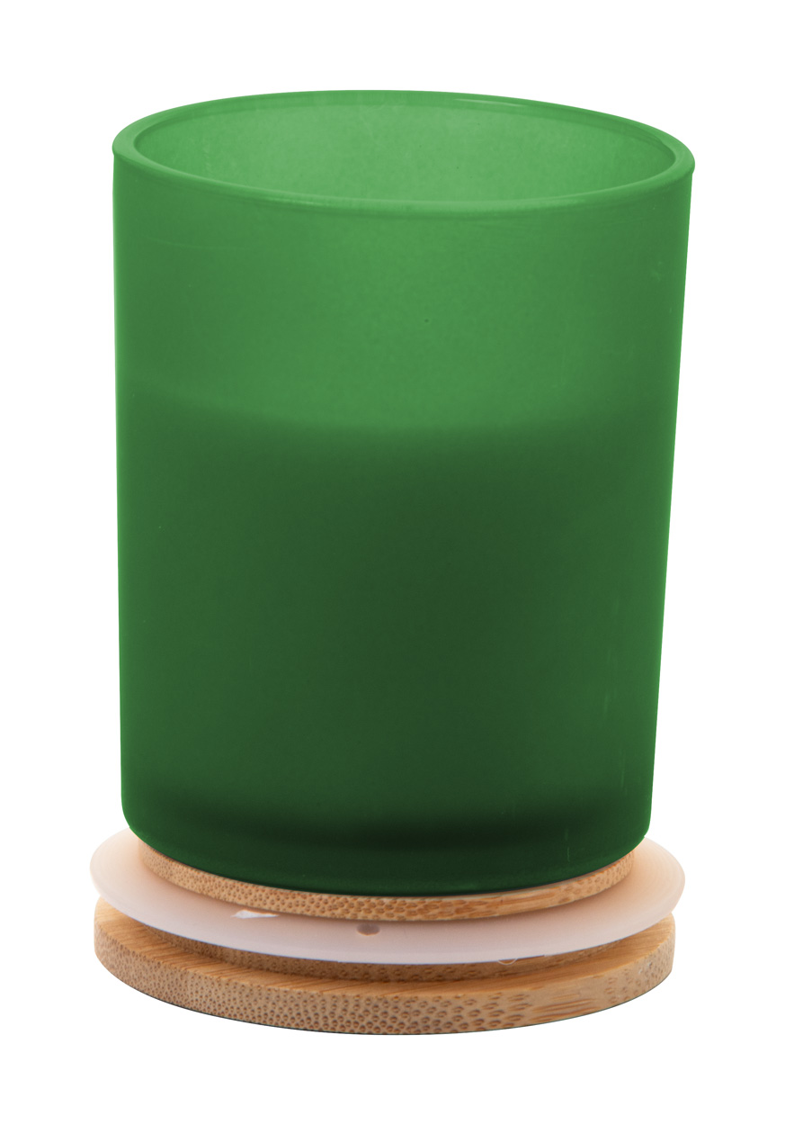 Vosková svíčka na rostlinné bázi v matném skleněném držáku s bambusovým víčkem. S 200 gramy vosku. V kraftové papírové krabici.