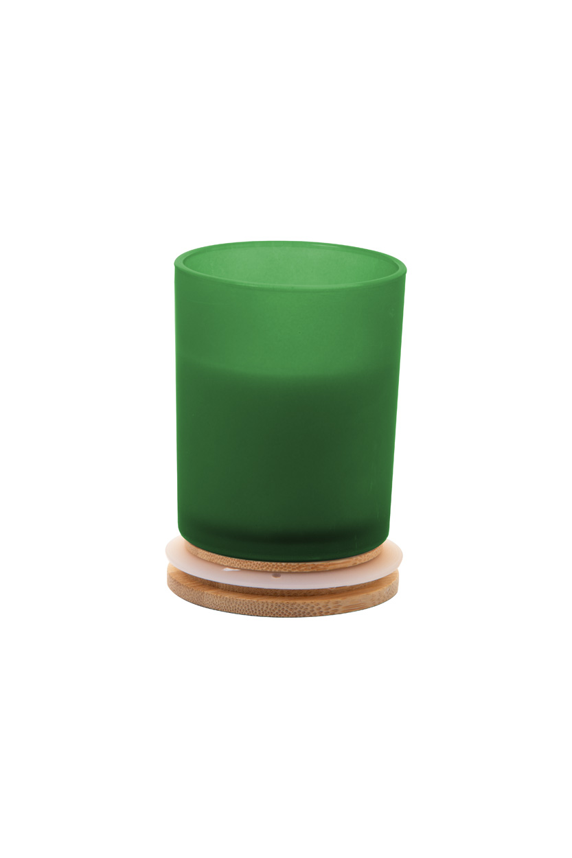 Vosková svíčka na rostlinné bázi v matné skleničce s bambusovým víčkem. Se 120 gramy vosku. V kraftové papírové krabici.