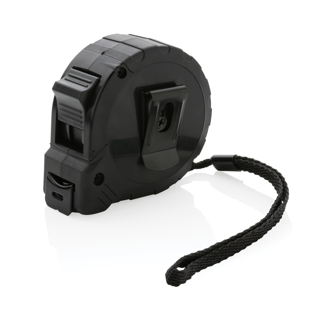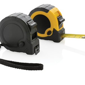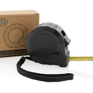 Svinovací metr s délkou 5 m vyrobený z RCS recyklovaného ABS plastu. RCS (Recycled Claim Standard) je globální standard, který umožňuje ověřit použití recyklovaného materiálu v produktu napříč celým dodavatelským řetězcem. Celkový podíl recyklátu dle váhy produktu: 15 %. 19 mm široké žluté pásmo s ocelovým háčkem. TRP pogumovaná úprava pro pohodlný úchop, poutko na zápěstí, tlačítko pro uzamčení/uvolnění, extra tlačítko pro zastavení na straně. Baleno v FSC® kraftové dárkové krabičce.