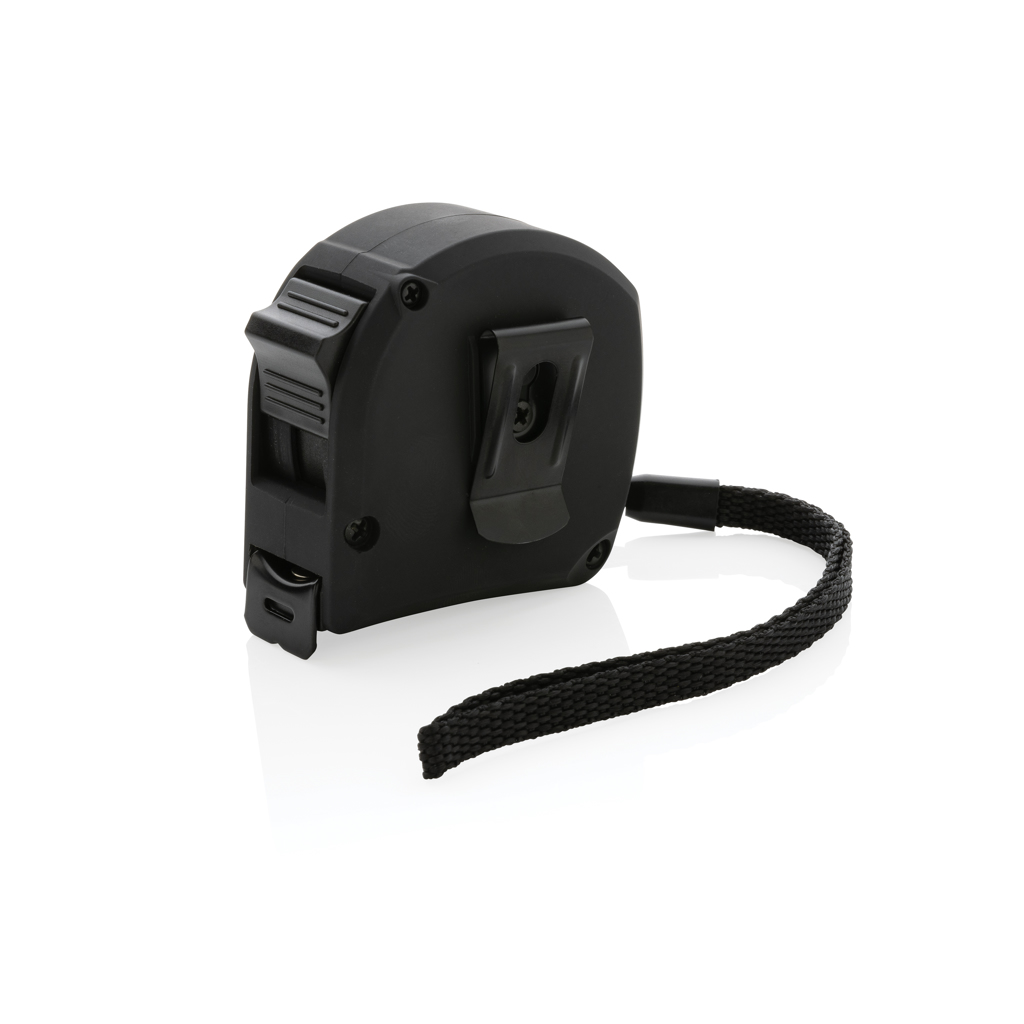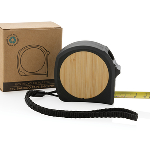 Svinovací metr s délkou 5 m vyrobený z RCS recyklovaného ABS plastu. RCS (Recycled Claim Standard) je globální standard, který umožňuje ověřit použití recyklovaného materiálu v produktu napříč celým dodavatelským řetězcem. Celkový podíl recyklátu dle váhy produktu: 11 %. Stylový detail ze 100 % FSC® bambusu. 19 mm široké žluté pásmo s ocelovým háčkem. Poutko na zápěstí, tlačítko pro uzamčení/uvolnění. Baleno v FSC® kraftové dárkové krabičce.