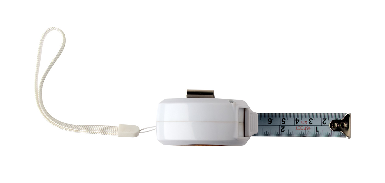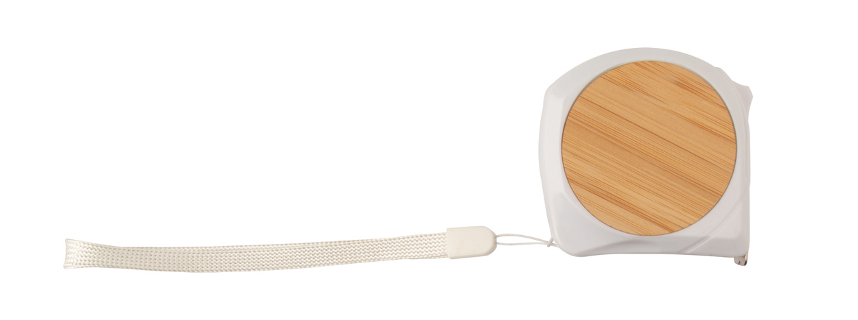 Plastový a bambusový svinovací metr s aretací, kovovým klipem a poutkem na ruku, 5 m.