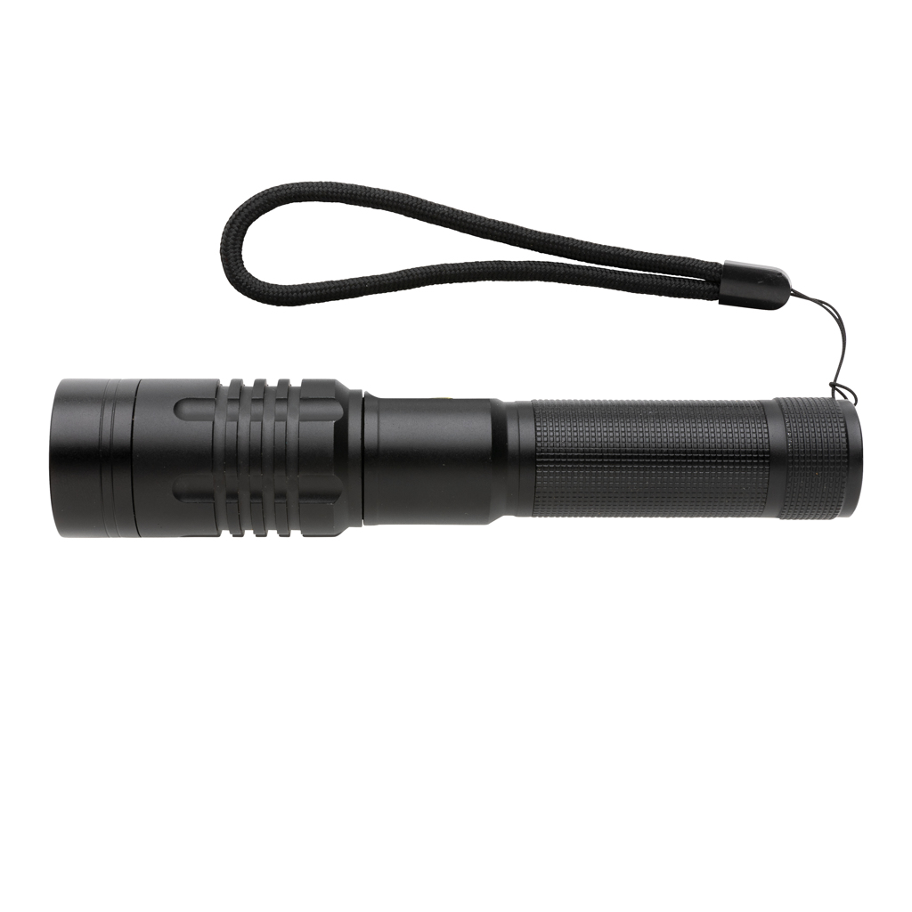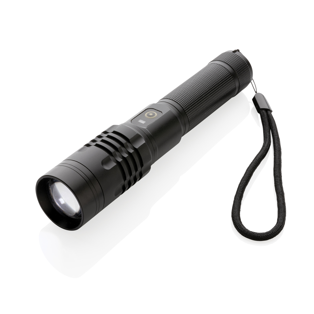 Vysoce funkční, výkonná a velmi stylová opakovaně dobíjitelná svítilna. Tělo vyrobené z prémiového hliníku skvěle padne do ruky. Funkce rozostření světla umožňuje jeho rozšíření až o 2 000 násobek. Výkonná žárovka se svítivostí 1 000 lumenů a dosvitem až 500 m. Více módů světla včetně SOS. IPX4 zabezpečuje odolnost vůči nepřízni počasí nebo vlhkosti. Integrovaná baterie s kapacitou 2 000 mAh umožňuje opakované dobíjení jednoduše skrze USB port a pužívání až 4h na jedno nabití.